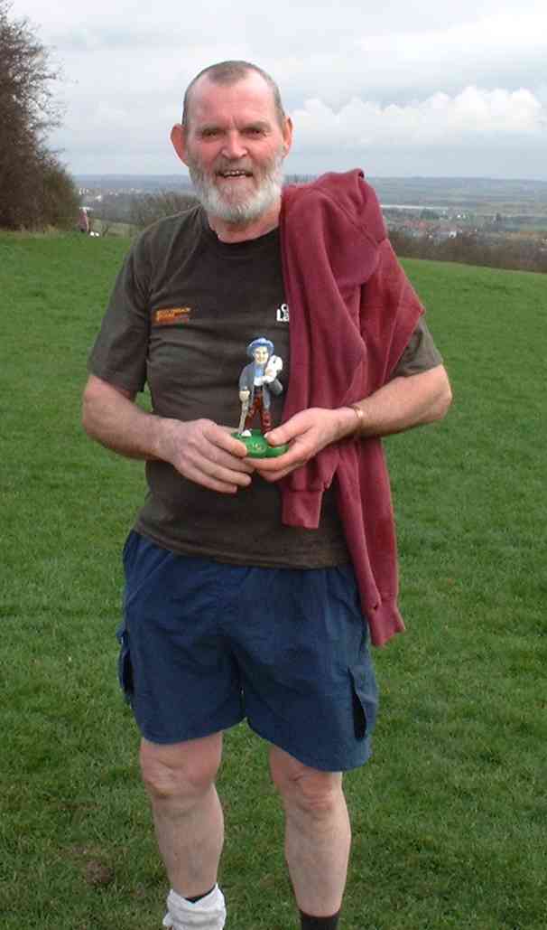 The worthy winner of the 2004 XC Handicap Fergie with the exquisitely crafted trophy. (which is which?) |